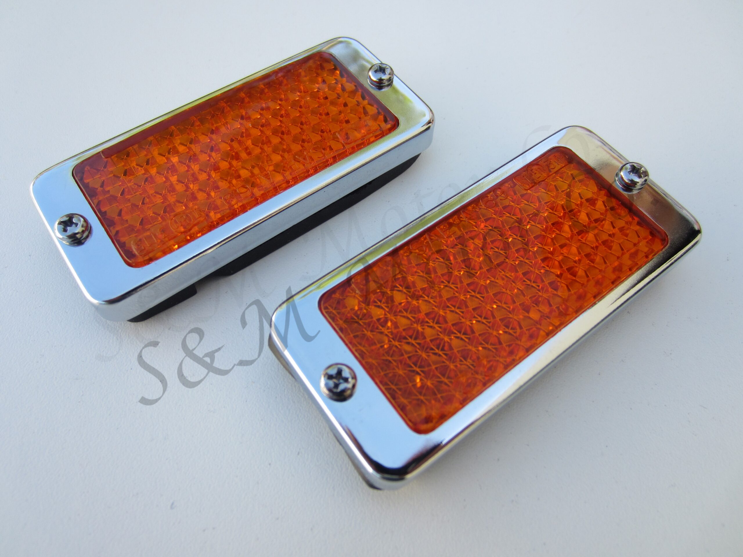 This is a brand new set of 2 Lucas replica amber reflector for oil cooler side.