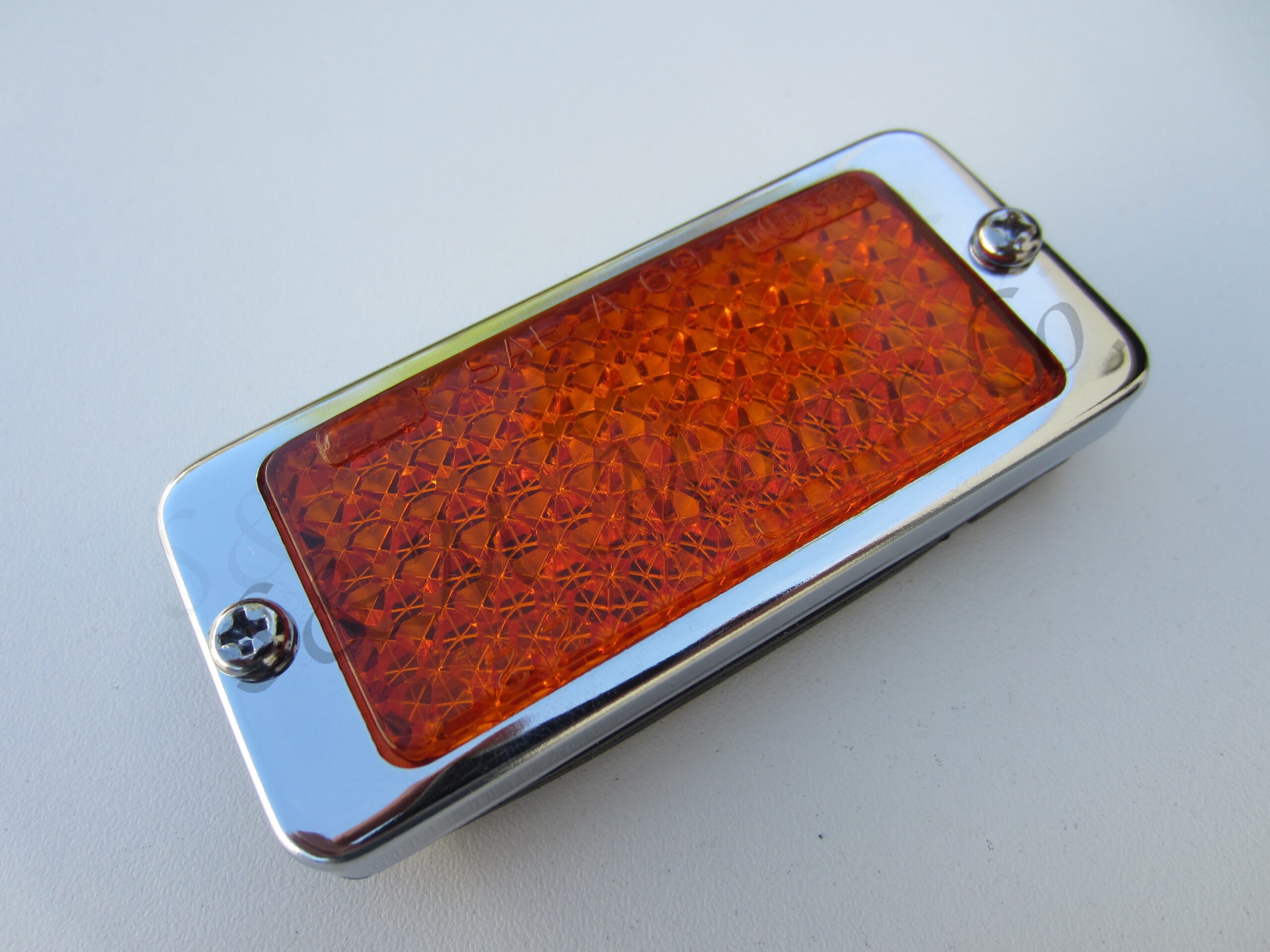This is a brand new Lucas replica amber reflector for oil cooler side.